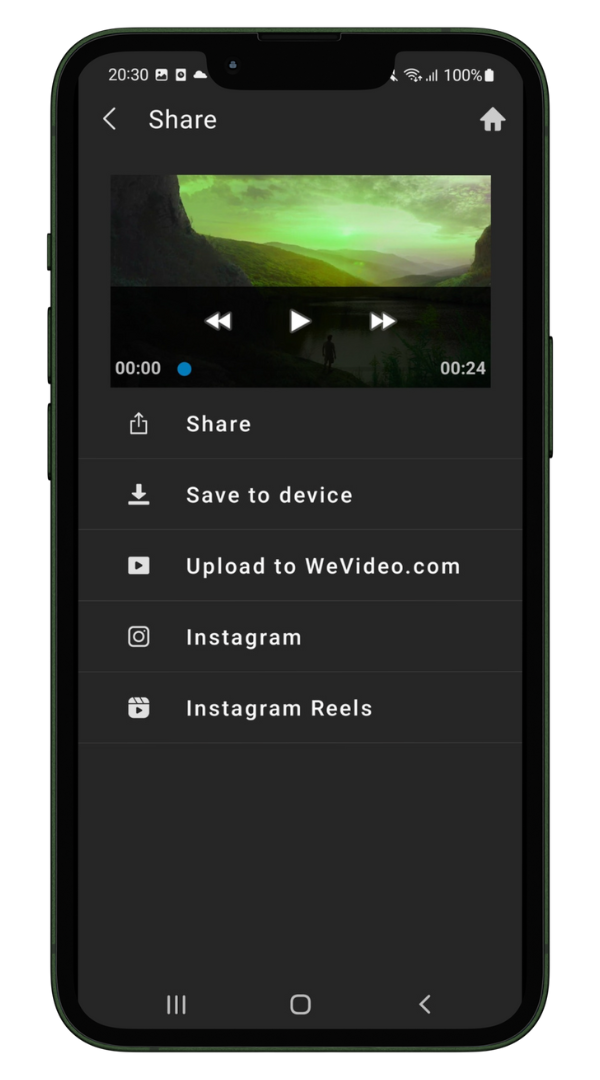 When you’re done, you have to option to export the video in different resolutions, even up to 4K. After that, it’s ready to share on your favorite platform, or upload it to WeVideo’s cloud and continue the editing on the web platform.