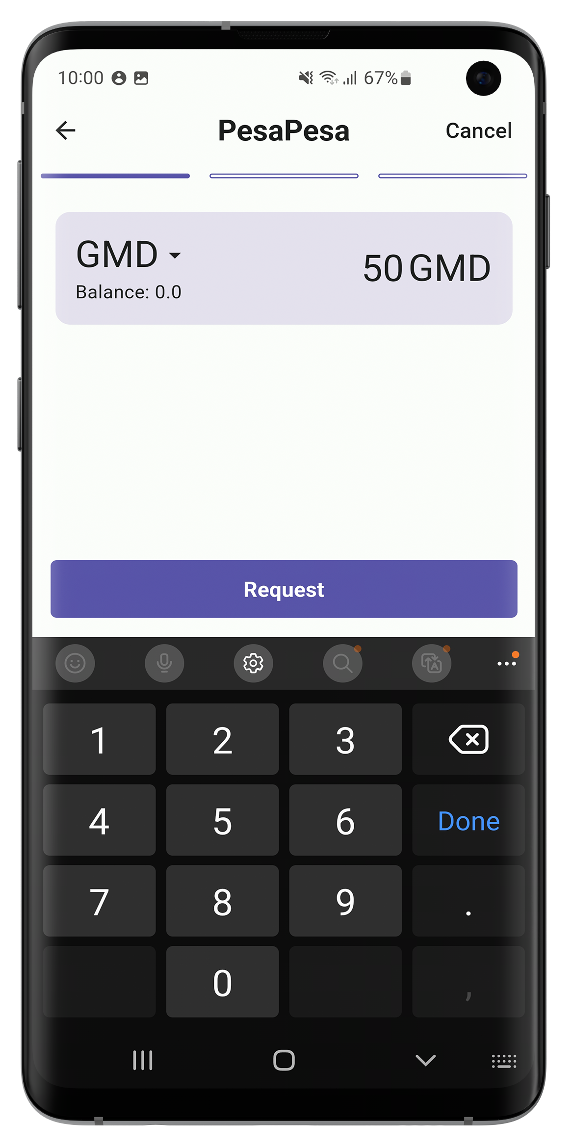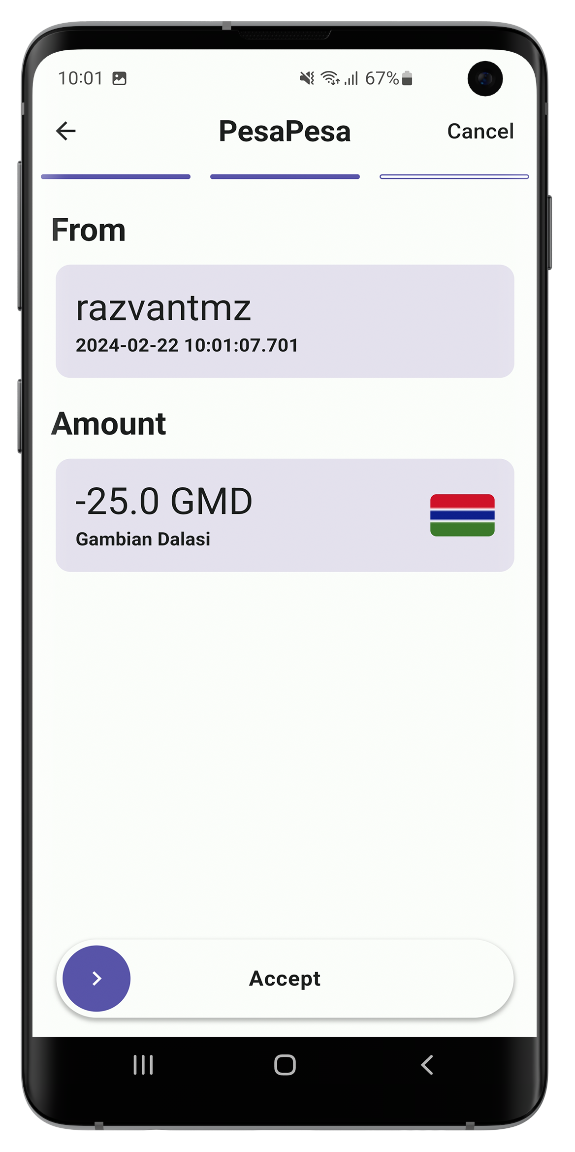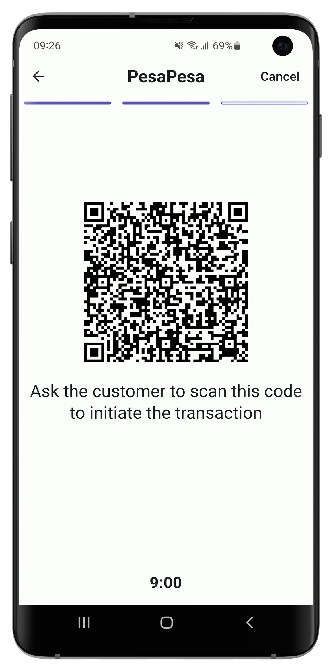 When a user requests money they need to enter the amount and the desired currency then they are showed a QR code that they need to present to the other user. Once the QR code is scanned the other user needs to repeat the scan on their side to confirm the transaction. This two step process make sure that the transactions are valid without needing internet connectivity. The main benefit of using this method is that payments can be made even in areas with low internet connectivity or where internet is not available at all.