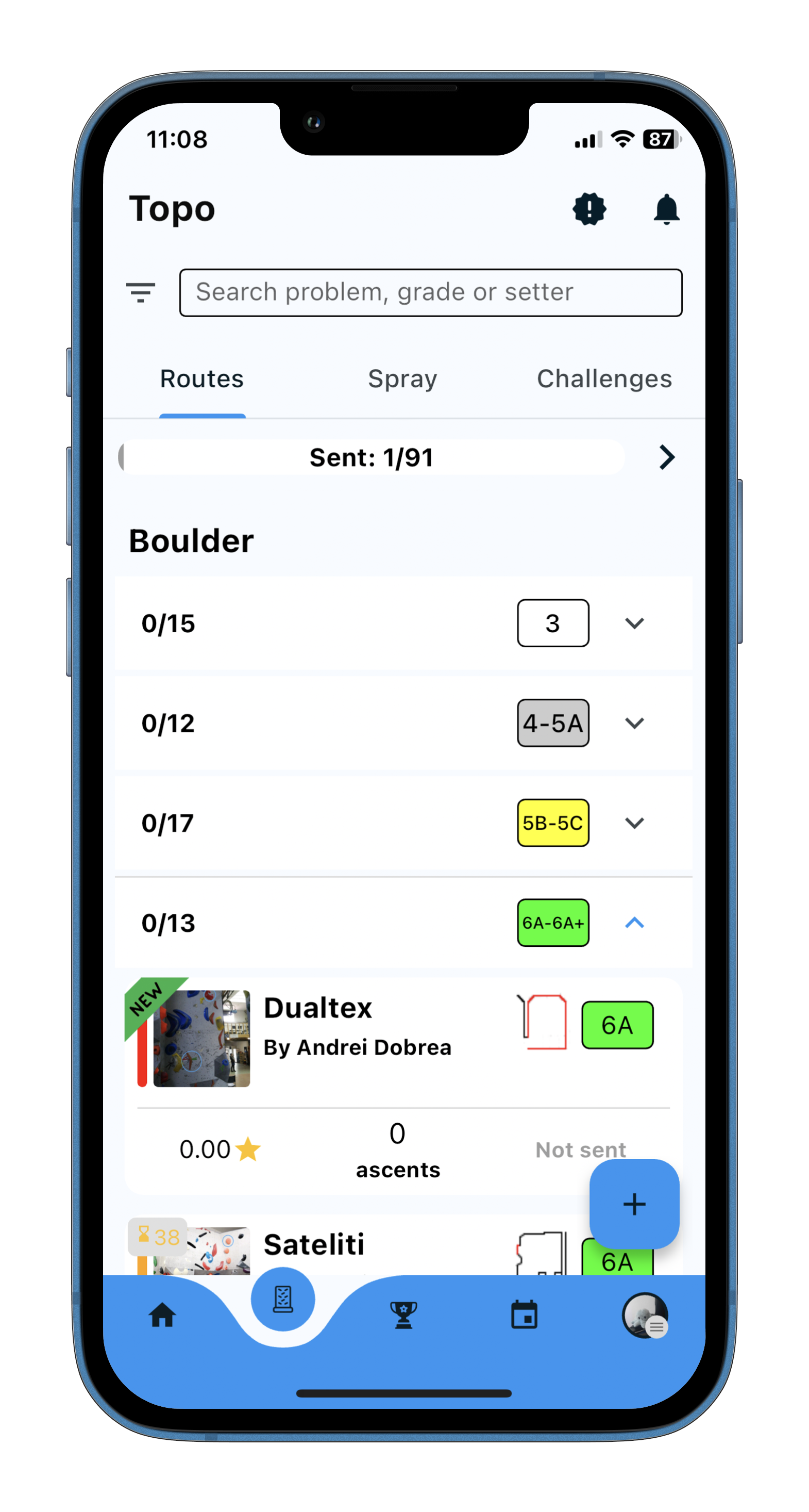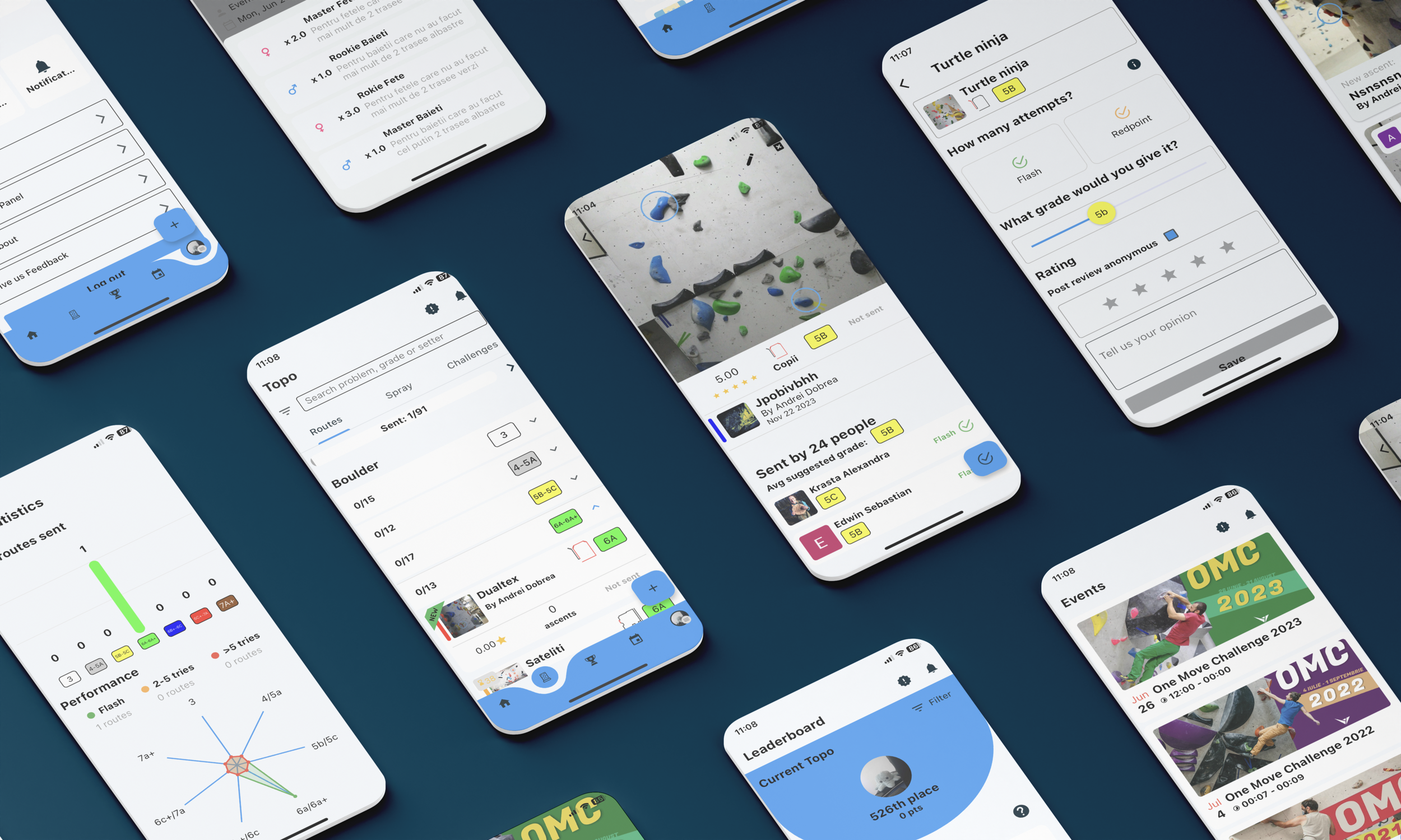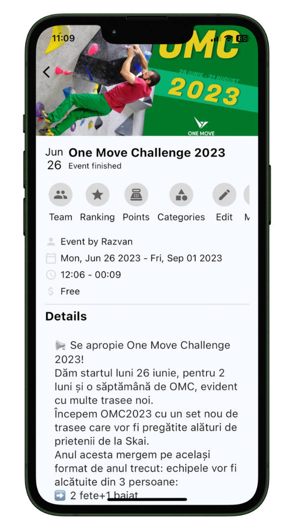 During climbing competitions, there can be more than a hundred people participating. Each participant gets a pen and paper to keep track of the climbs he completed. This is tedious and slow because the paper can get destroyed, pens get lost and at the end, the staff has to calculate the score for each participant and create a leaderboard. This is slow and hard. What One Move Climbing Gym wanted, was to digitalize this process in an app where everyone can track their climbs and score in real-time. Also, people should be able to register for a competition, solo or with a team, directly from the app.
