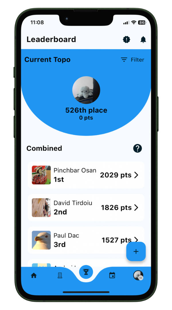 An additional feature of the application is the ranking system, which is calibrated based on user performance. The core elements determining a user’s rank include the number of attempts taken to complete routes and the difficulty level of these routes. This dynamic ranking mechanism not only provides a quantitative measure of climbing proficiency but also encourages skill development and strategic planning in route completion. The ranking can also be filtered by gender, climbing level(Rookie/Master) and a period of time(Current Topo, last month, since the beginning).